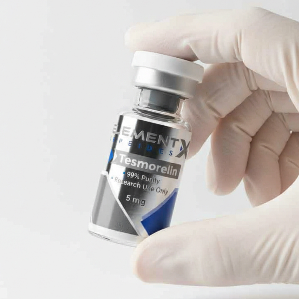 Tesmorelin is a synthetic peptide analogue of growth hormone–releasing hormone (GHRH), widely used in controlled in-vitro laboratory studies to investigate GHRH receptor signaling, intracellular cAMP/PKA pathways, and experimental models of the growth hormone (GH) axis.